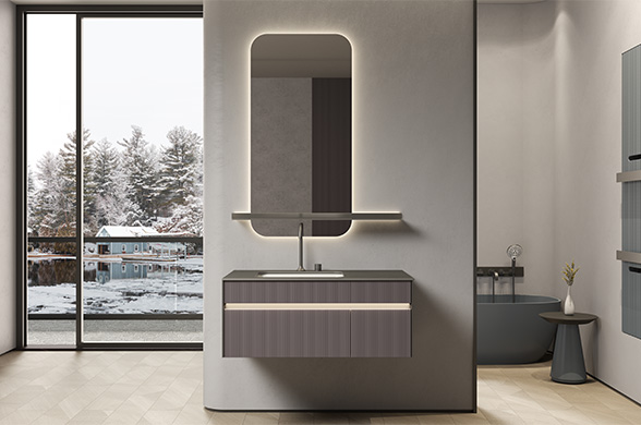 柜體材質:高級灰免漆板+朗生水磨石面板